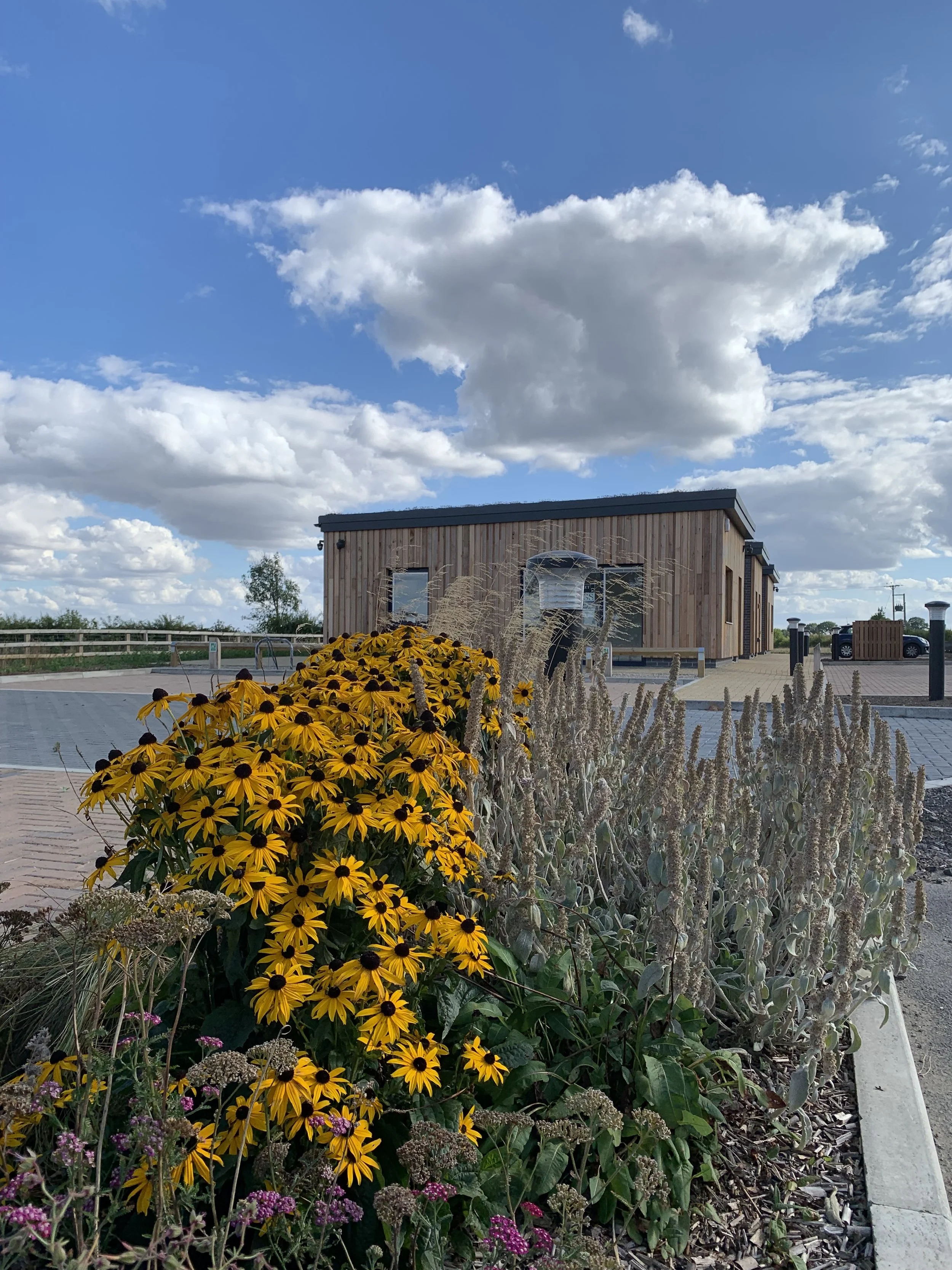 This series of office ‘pods’ was created to respond to the desire for smaller office spaces following the Covid 19 pandemic. Conceived to be highly energy efficient, they are heated by an air source heat pump while the building fabric offers a high level of thermal performance and air tightness. Cedar cladding and a sedum roof relate the building to its environment while large windows looking out to the fields beyond, and individual external sitting terraces promote a connection to the wider landscape and promote wellbeing.